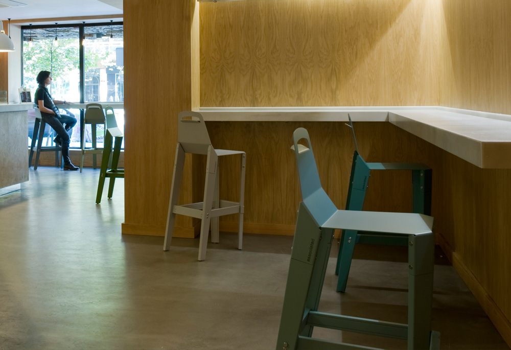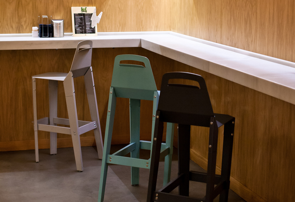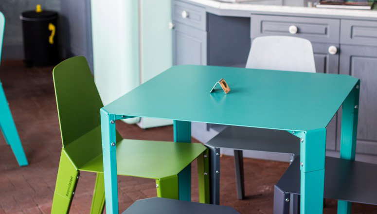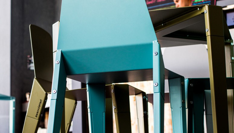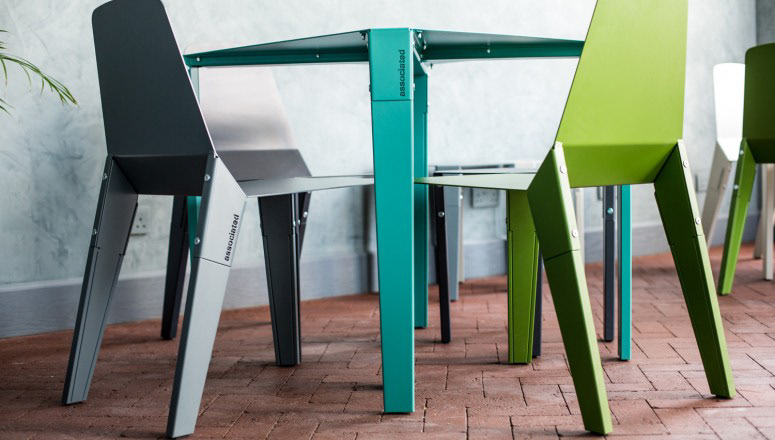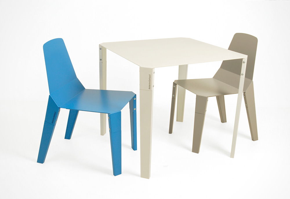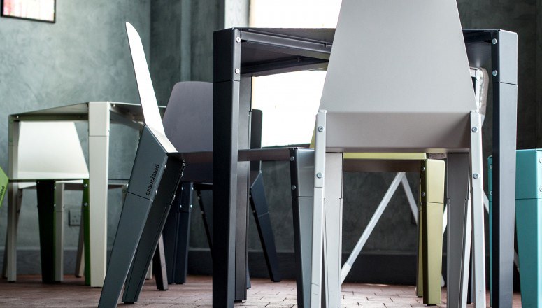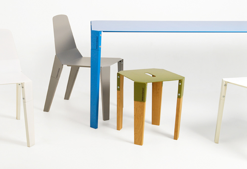 The inspiration for the Amirite Collection comes from simplicity and the connection of two materials - steel and wood. In addition, the idea of minimizing production cost and thinking about the impact of a product - from production, shipping and assembly - was a large influence in the design of this collection. The bodies of the units are comprised of a single piece of laser-cut steel. The flat pattern is then thoughtfully bent into shape to give structure, comfort, and style. The legs are crafted out of solid oak wood and mounted flush to the steel body, or option for monochrome legs out of steel. The legs are easily assembled after shipping with included hex connectors allowing for a smaller shipping parcel and lower cost.