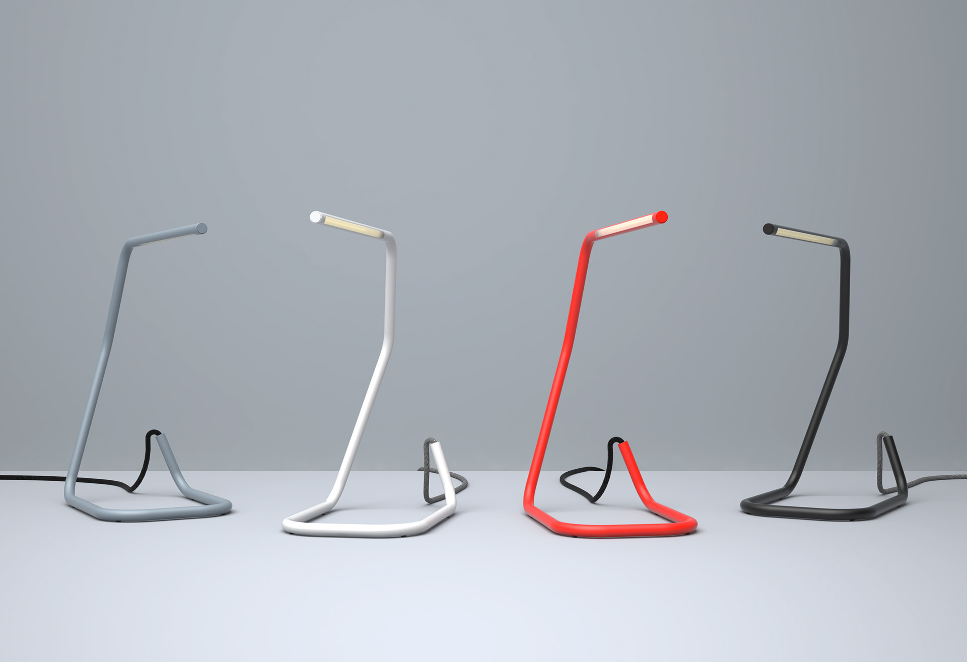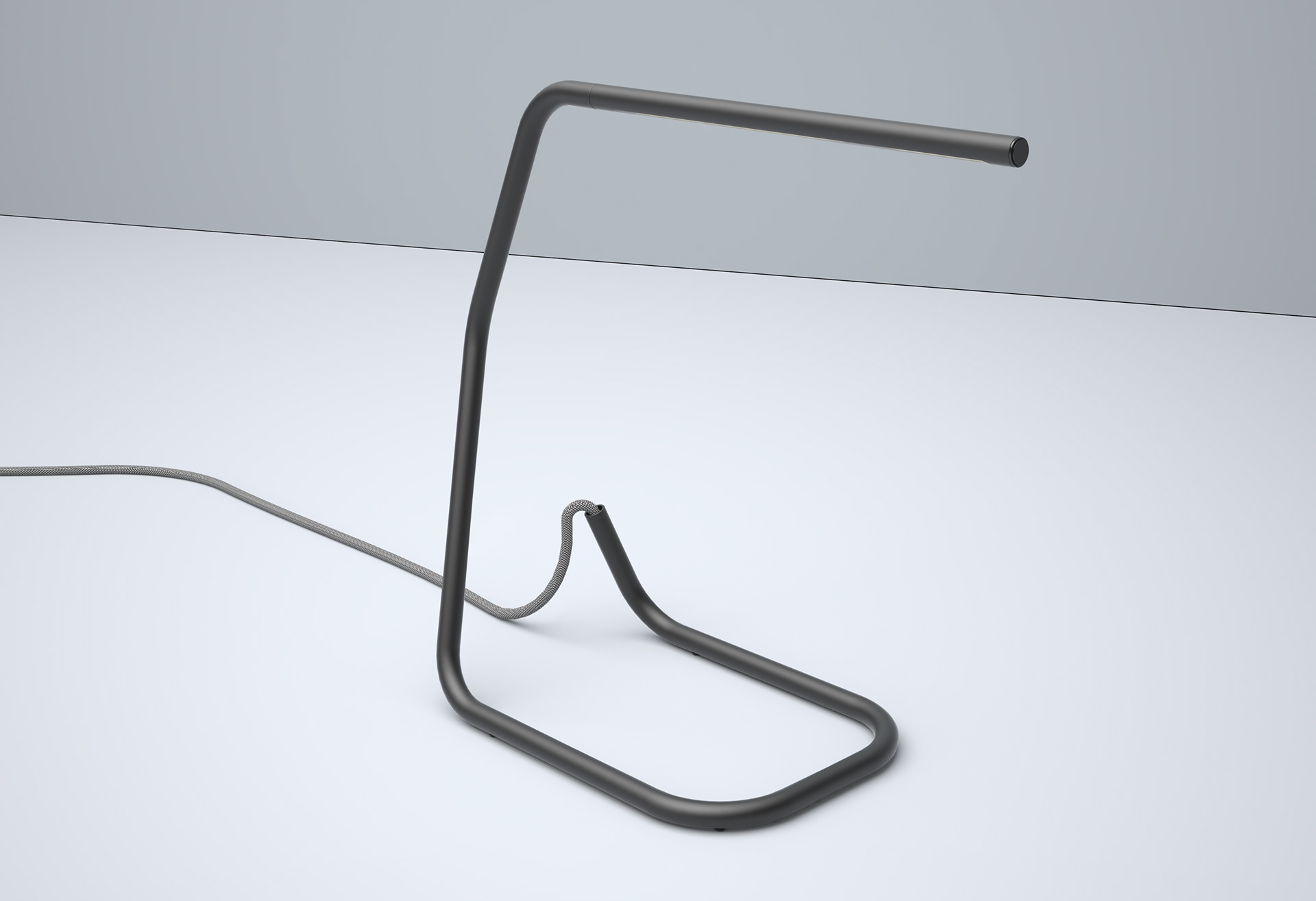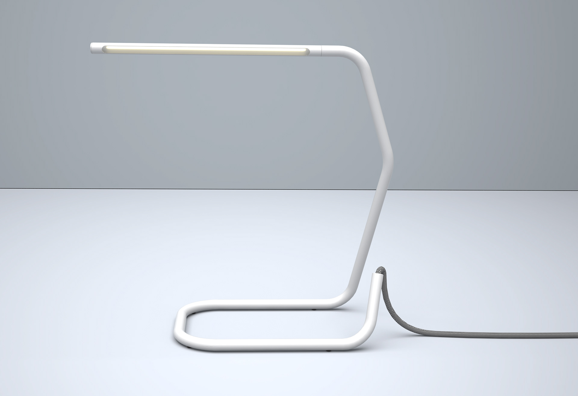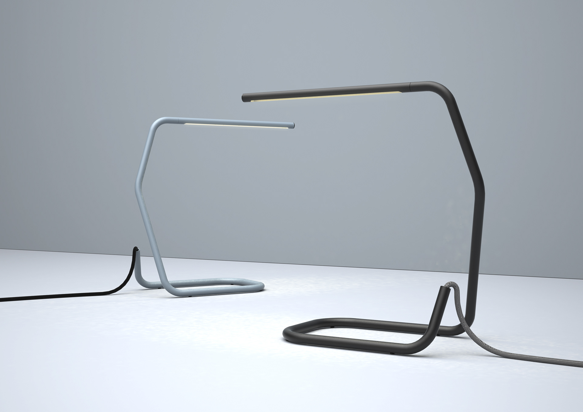 CONTOUR is a desk lamp inspired by simplicity through construction and materials. As though it were a contour line tracing into space, it is created by a single steel tube. The self-supporting structure utilizes a warm, white LED luminaire in a pivotal armature allowing for versatile lighting options.